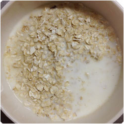 Put oatmeal and milk in a bowl and mix. |