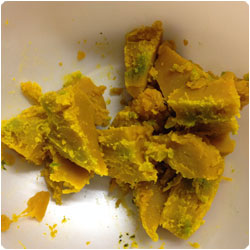 Cook the pumpkin until soft (in the oven covered with alluminum foil or in the pressure cooker or in the microwave). Remove the peel and with a fork smash it in a bowl. |