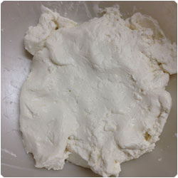 and water. Add water in order to make a soft dough (as soft as your ear lobe). The quantity of water depends on yur tofu. With your hands, make one-bite-size balls |