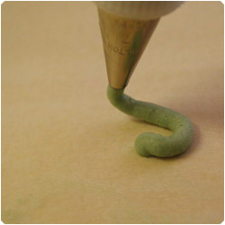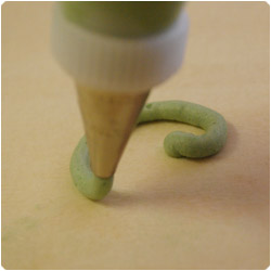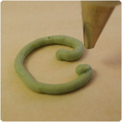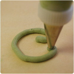 Writing. Hold the bag 45degrees, with the tip slightly above surface. Sqeeze the bag andgently move the tip according with the shape you want to make. |