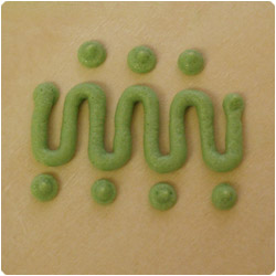 Dots. Hold the bag at 90degrees, with the tip slightly above the surface. Sqeeze the bag and keep point of tip in icinguntil dot is the size you want. Stop squeezing the bag completely before you lift the tip from the dot. |
