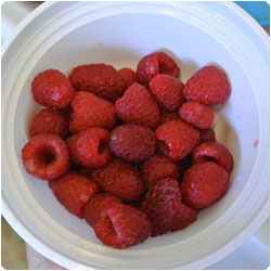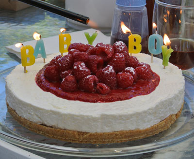 Ingredients20cm/9inch cake pan - 250g of of digestive biscuits - 40g of butter - 350g of creamcheese - 3/4 cup of sugar - 1 1/4 cup of heavy whipping cream - 2 hand full of raspberry - juice of one lemon