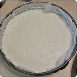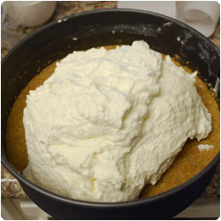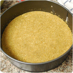 Mix well. Spread the biscuits at the bottom of the cake pan, pressing them with your hands or a spoon. |
