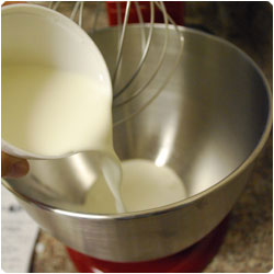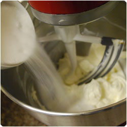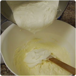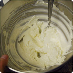 Meanwhile whip the cremcheese with the sugar until smooth. In another bowl whip the heavy whipping cream until fluffy. |