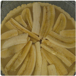 Pour the caramel on the half prepared crust. Slice the banana to stripes, spared on the caramel and pour over the chocolate. Bake for 15 minutes at 180°C (370F) until filling stabilizes (and still quivering slightly in the center). Cool slightly. |