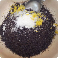 Make the Poppy stuffing: mix poppy seeds with the vanilla-sugar and the lemon peel. Boil the milk and gradually pour to the poppy while stirring. Add sugar according to your taste. |
