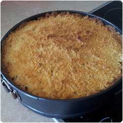 Spread the apples mix. Grate the dough from the freezer on top of the apples. Bake for about 30-40 minutes at 180C (350F). |