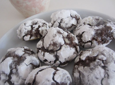 IngredientsFor about 50 cookies - 350 g dark chocolate - 50 g butter - 3 eggs - 1/2 cup (100 g) sugar - 3 tablespoons liqueur or milk - 3/4 cup full (120 g) flour - 1 teaspoon baking powder - 1 cup (100 g) ground almonds - Powdered sugar, for coating