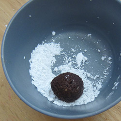 Make balls 1inch in diameter (about the size of a ping-pong or a golf ball). Put some powdered sugar in a bowl |