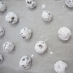and roll each ball in it. When you finish with all of them – roll each ball in powdered sugar again because some powder tends to be absorbed. |