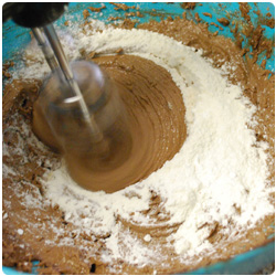 When the mixture is too dense add some milk. Continue to add flour and milk, you should get a smooth mixture. |