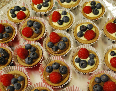 Make the patry cream (look the recipe hereyou can make half of the ingredients if you make also the chocolate one). Fill the mini pie with the pastry cream and... be creative! Use the fruits you like to make nice decorations on top of the cakes. |