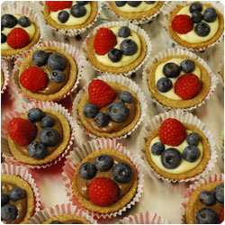 Make the patry cream (look the recipe here, you can make half of the ingredients if you make also the other one). Fill the mini pie with the pastry cream and... be creative! Use the fruits you like to make nice decorations on top of the cakes. |