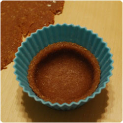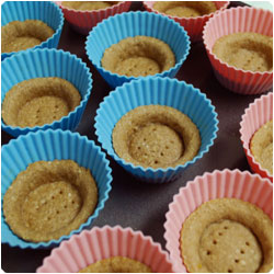Spread some butter in some baking cups (for muffin/cupcakes). Make the dough flat with a rolling pin. Make it 3-5 mm thickness. Cut round dough shapes with a glass. |