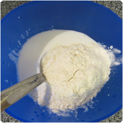 Mix the coconut milk with the flour and add to the pot. Mix for 2 minutes.
