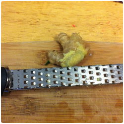 Cut really thin the shiso leafs and greens onions. Grater some ginger. |