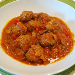 IngredientsFor the meat:- 500 g ground beef - 5 tablespoons bread crumbs - Italian parsley, chopped - 1 egg - 80g of mushrooms - salt and pepper Sauce:- 2 cans of tomato sauce - 1 onion, finely chopped 180g mushrooms - boiling water as needed - olive oil - salt