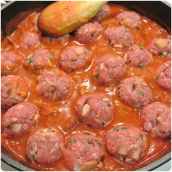 Set the meatballs aside to add them all together in the sauce. |