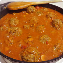 Add the meatballs in the sauce, genlty stir to make sure all are at least half covered with sauce, cover the pan and cook for about 30 minutes until the meat is cooked. Check them once or twice to turn them and be sure they cook both sides. |