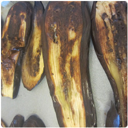 Make the ragu. You need about 450g, you can find the recipe here. Don't use wine. Instead of rosemary and oregano, spice with 1 teaspoon of paprika, 1/2 teaspoon of cinnamon and 1/2 teaspoon of cumin. You will need plenty of water in your Ragu, since some of it will evaporate during the cooking time in the oven. Soak eggplants in water and spread salt to remove bitterness for 1 hour or more. |