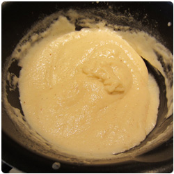 Make the béchamel: melt the butter and add flour. Stir until you obtain a gram. Salt and nutmeg to taste. |