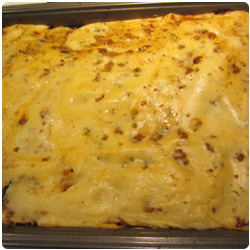Cook covered in the oven at 180°C (360F) for 30 min. Remove the cover, add cheese on the top if wanted and cook about 10 more min until golden brown. Serve warm. |