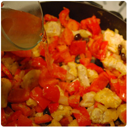 Add the chicken in the pan and sautée. After a few min, add one glass of white wine. |