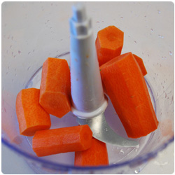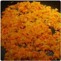 Cut the carrots, chop them in the mixer and add them in the pan. |