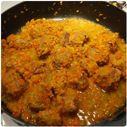 When the mushrooms are almost cooked, add them to the meat, cook for another 10 min together without covering the pot. (if it is too dry, you can add more wather, if is too liquid you can cook a bit more without covering the pot). |
