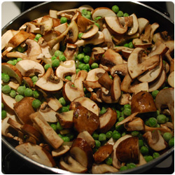 Add the mushrooms and stir. A few min later, add the peas and cook everything for about 20 min, stirring constantly. |