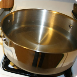 Boil the lasagne noodles and drain under cold water. Add butter or olive oil to the noodles to prevent them from sticking together. |