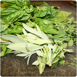 Chop the herbs into fine pieces and set aside. Once the meat is browned, add the two jars of tomato sauce and the herbs. |
