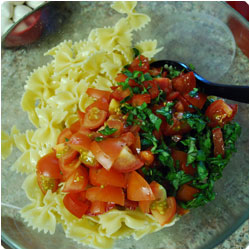 Chop the fresh basil leaves and add them with the tomatoes in the pasta (Once the pasta is cold) |