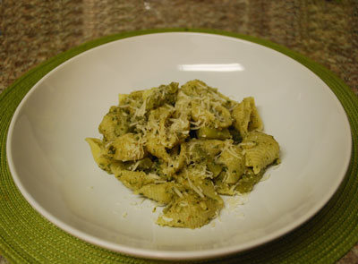 Put the pasta again in the pot and add the pesto and the parmesan. Mix gently and serve warm. |