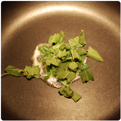 The gnocchi will float when they are ready. With a scoop, gently remove the gnocchi as soon as they float up. In a pan, melt some butter and add the sage. |