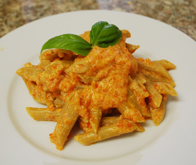 Ingredients- 180g of pasta (we used penne) - 2 red peppers - 3 tblspoons of ricotta - olive oil - salt and pepper