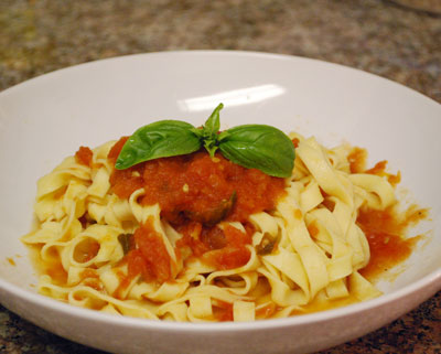 You should get a dense tomato sauce. You can make it more smooth processing it with a food processor ot an immersion blender. Serve with your favorite pasta! |