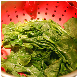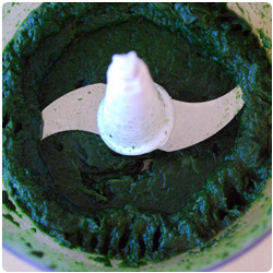 Boil 250g of spinach leaves, and mix them in a mixer to get a cream of spinach. |