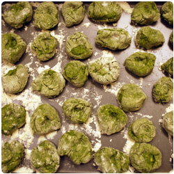 Ingredients- 500g of white potatoes - 100g of flour - 2 yolks eggs - 250g of spinach leaves - salt