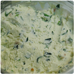 Chop the green onions and half shallot and mix them with the cream cheese. Add salt and pepper to taste. |