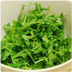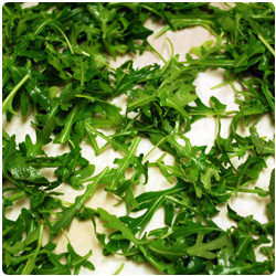 In the meanwhile prepare the arugula. Wash it and chop the leaves. |
