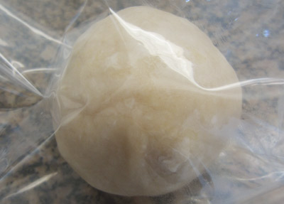 Add slowly the water and with your hands make a dough ball. Wrap it and leave it in the refrigerator 15 to 30 min before to use. |