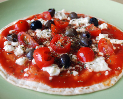 PiadiPizza with Feta and Fresh Tomatoes