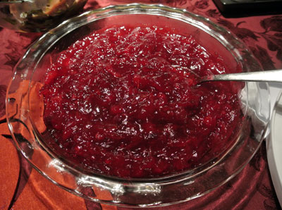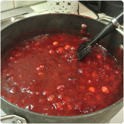 Stir constantly until the cranberries start to melt. Cook for about 10 to 15 minutes. it will gets more dense as it cools down. Serve warm or cold. Tipically served in America with turkey on thanksgiving day! |