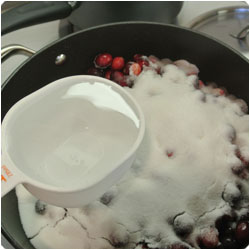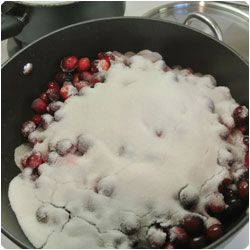 In a pot add cramberry, sugar and water. Start to cook at low-medium heat. |