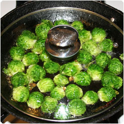Put the sprouts, cut side down, into the pan. Cook for about 5 minutes covered. |