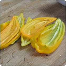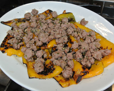 Ingredients- 6 yellow bell peppers - 1 fresh italian sausage - 1 garlic clove - fresh rosemery