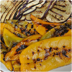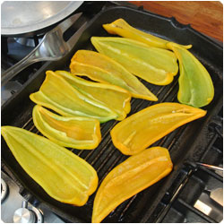 Clean the bell peppers taking out the seeds and the white parts. Grill them both sides on a grill pan. Set aside. |