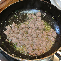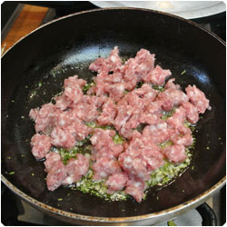 In a pan saute some olive oil with minced rosemary and garlic. |