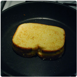 Cover the mozzarella with the other slice and cook for few min until both sides of the bread are golden brown and the mozzarella melts inside. Repeat the process for the other serving. Serve hot. |